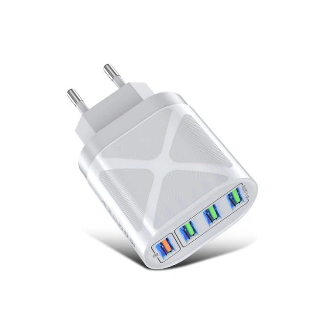 Мережевий зарядний пристрій QC3.0 48W 4xUSB швидка зарядка смартфону USLION US0167 (BK-389) White