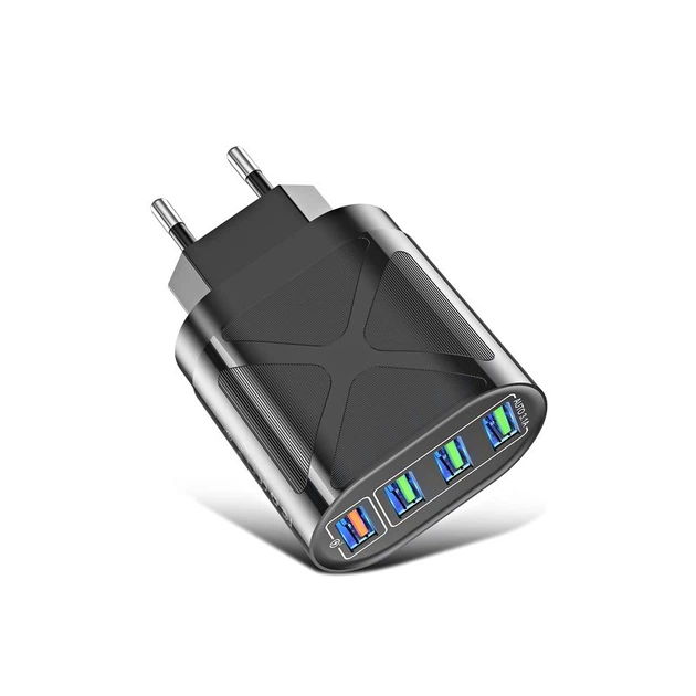 Мережевий зарядний пристрій QC3.0 48W 4xUSB швидка зарядка смартфону USLION US0167 (BK-389) Black