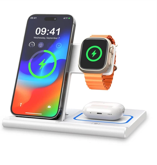 Бездротовий зарядний пристрій EXW HYS 03 [2024], зарядна станція 3-в-1 15W (Білий)