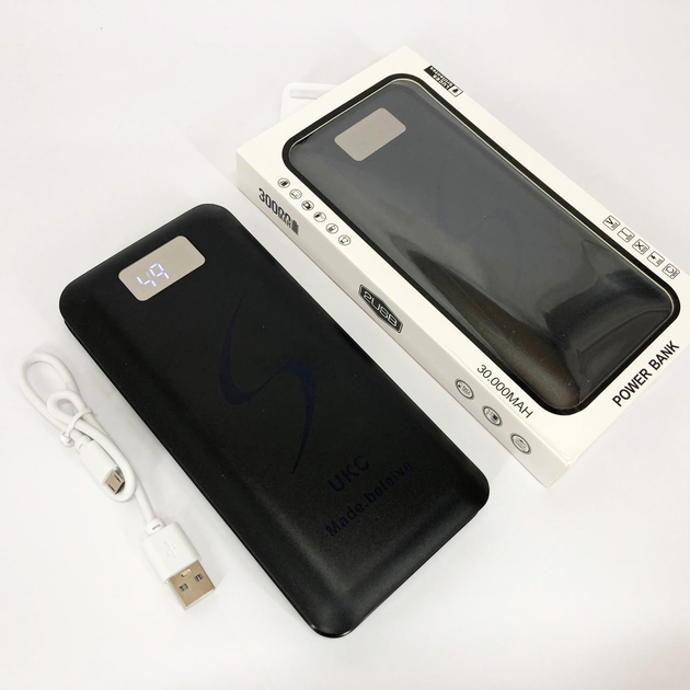 Мобільна зарядка портативна Power Bank 30000 mAh UKC, Зовнішній акумулятор, Зарядка power bank. Колір: чорний