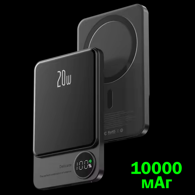 Магнітний повербанк (Power Bank) 10000mAh з MagSafe, швидкою зарядкою 22.5W та LED-дисплеєм для iPhone 12/13/14/15/16