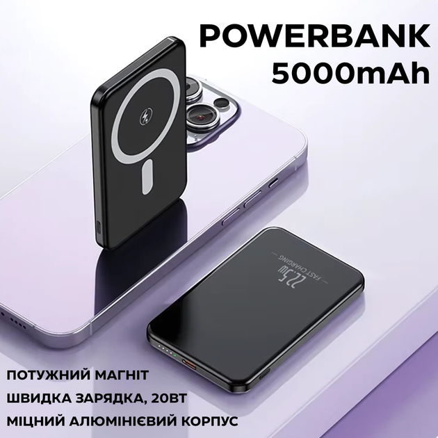Бездротовий магнітний повербанк 5000 mAh із швидкою зарядкою MagSafe