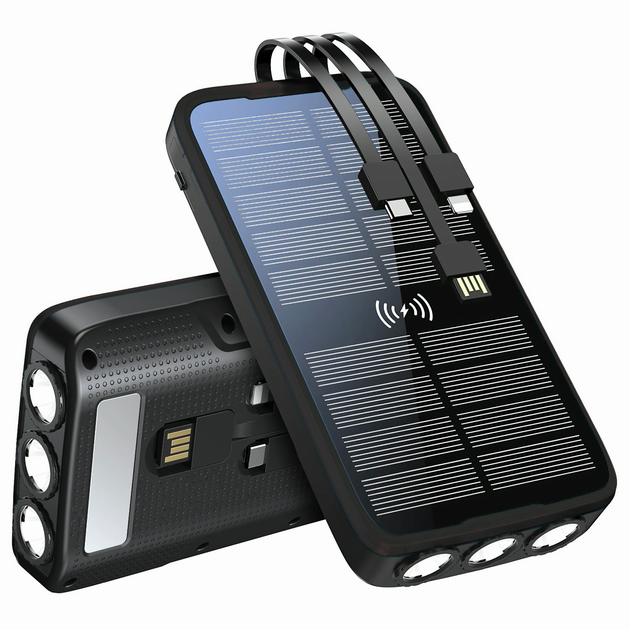 Сонячний Power Bank iBattery L3SW з бездротовою зарядкою QI 20000 mAh чорний із вбудованими проводами (pbs-0088)