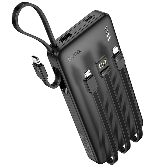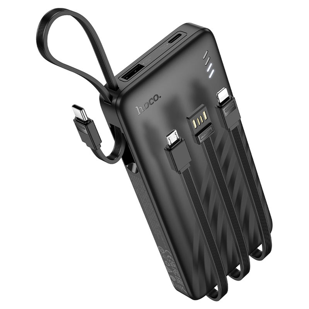 Портативний зарядний пристрій повер банк Power Bank HOCO J146 на 10000mAh з вбудованими кабелями, чорний