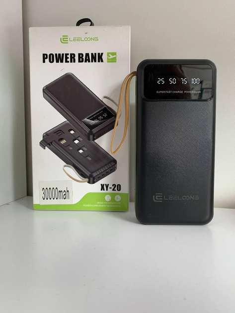 УМБ Power bank SKF D25 на 20000 мАг, PD, QC 3.0, 22.5W ліхтариком, вбудовані кабелі (Чорний)