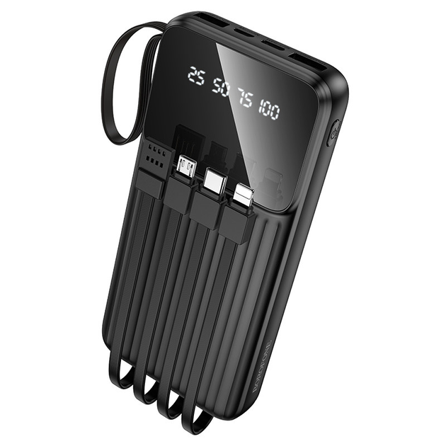 Power bank Borofone BJ77 10000 mAh зі швидкою зарядкою, дисплеєм та вбудованими кабелями Black
