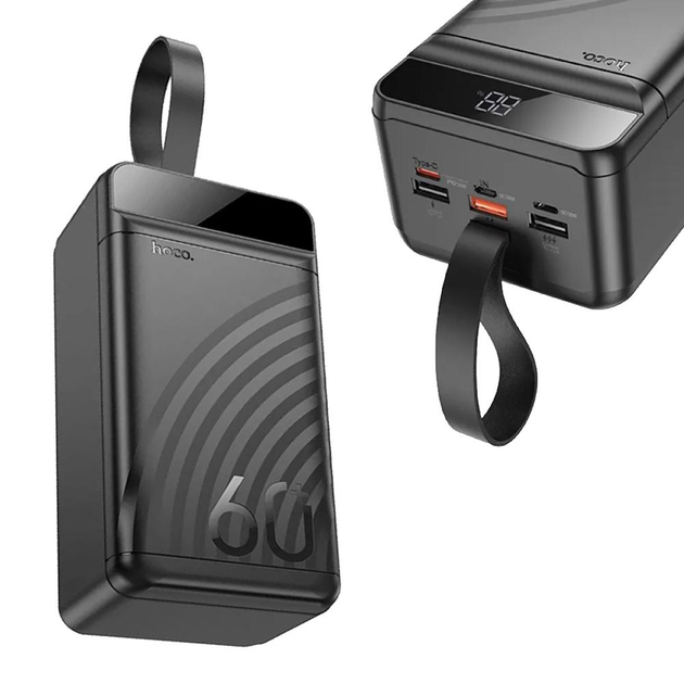Повербанк Hoco Element 60000 мА·год 22,5 Вт + PD20W з LED-дисплеєм і ліхтарем чорний (JI23C)