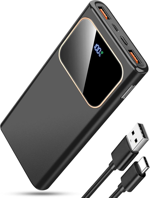 Power Bank AONIMI 13800 мАг, тонкий та легкий портативний зарядний пристрій 15 Вт PD 3.0А Чорний