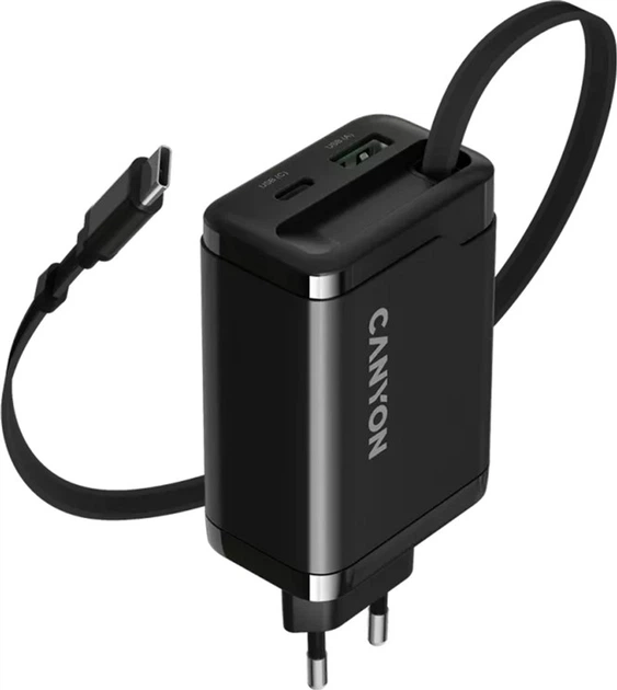 Зарядний пристрій Canyon OnCharge 65RC Build-In Cable USB-C 65W 1xPD 1xQC Black (CNS-CURC65ACB)
