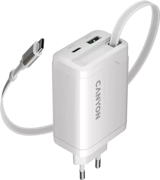 Зарядний пристрій Canyon OnCharge 65RC Build-In Cable USB-C 65W 1xPD 1xQC White (CNS-CURC65ACB)
