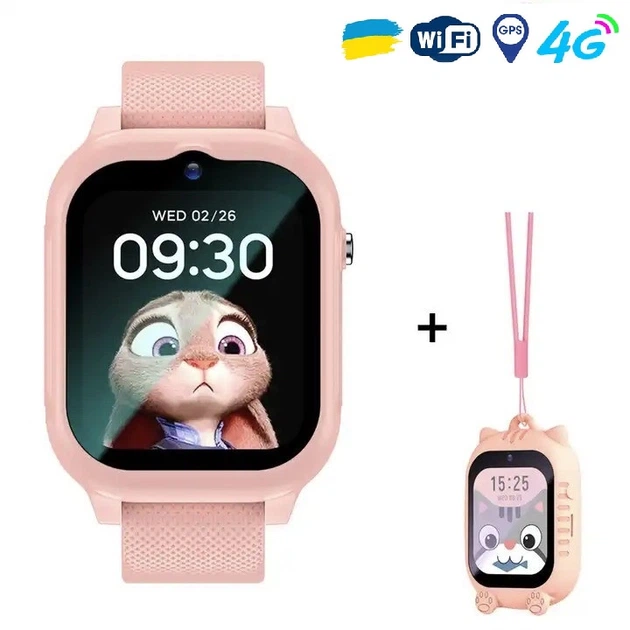 Дитячий смарт годинник-телефон Lemfo K26 з GPS для дівчинки рожевого кольору, підтримкою 4G з брелоком і 2 додаткових корпус