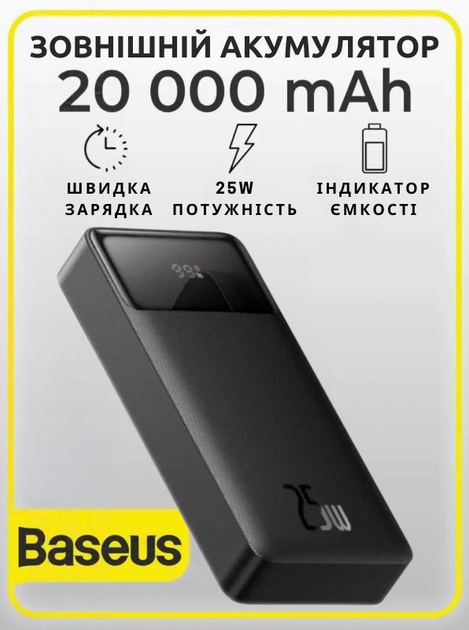 Універсальна мобільна батарея Baseus Bipow 20000mAh 25W. Портативна батарея з підтримкою швидкого заряджання.