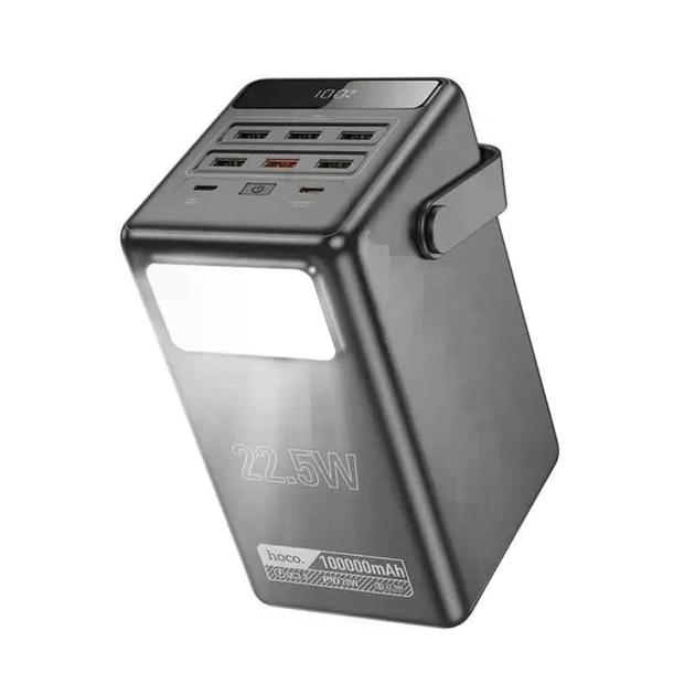 Повербанк Hoco 100000 mAh 22.5W з швидкою зарядкою PD 6 USB 2 USB Type-C Powerbank з ліхтариком Чорний