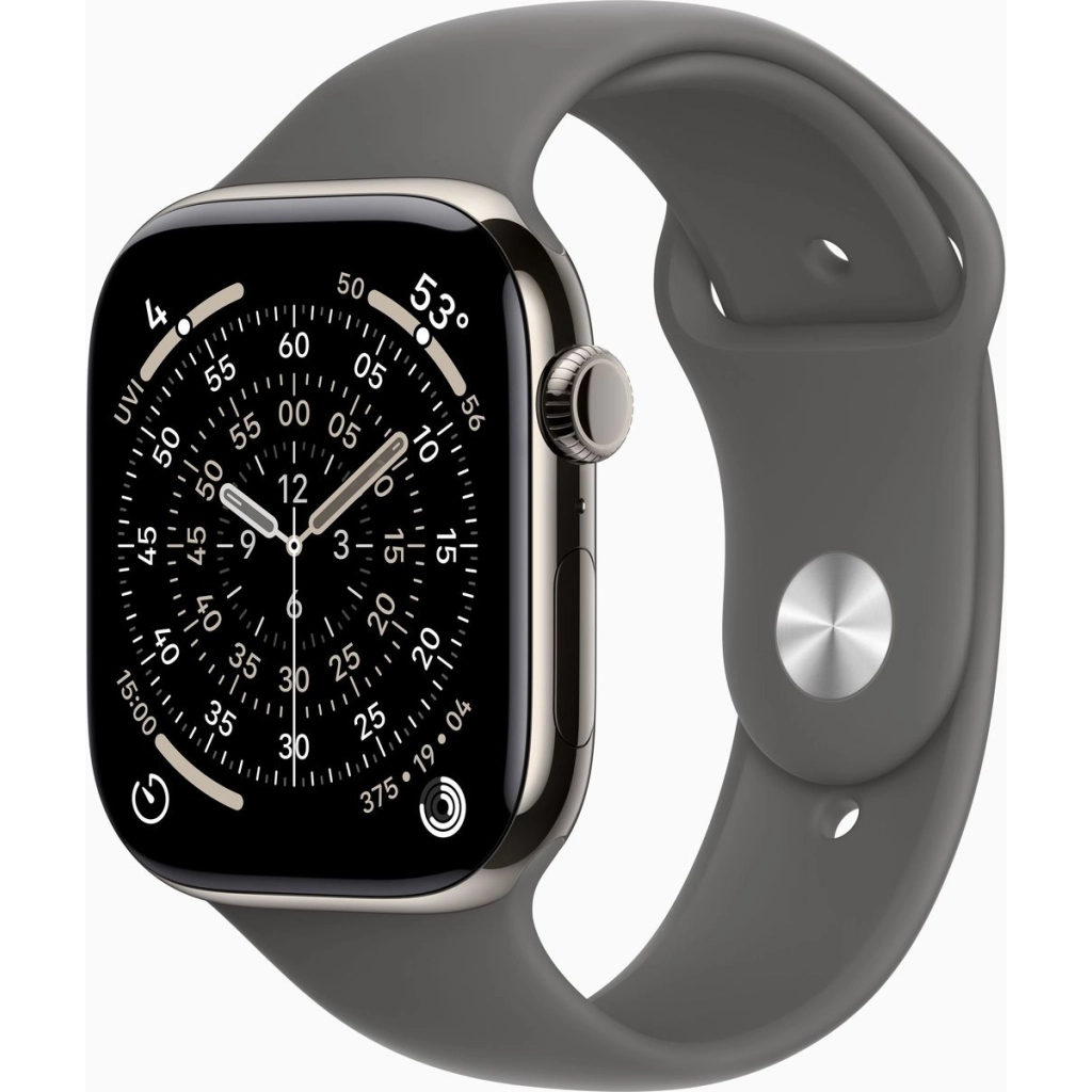 Apple Watch Series 11 GPS + Cellular 46 мм, корпус із натурального титану, спортивний ремінець сірого кольору – M/L, модель