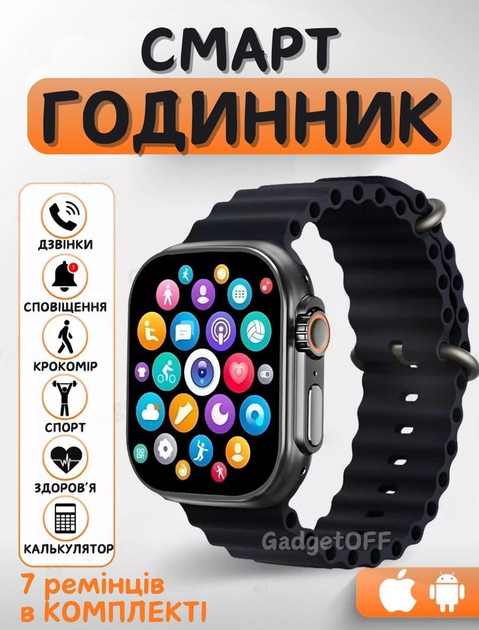 Набір смарт годинник HiWatch S9 Ultra 2 з 7-ма ремінцями Чорний