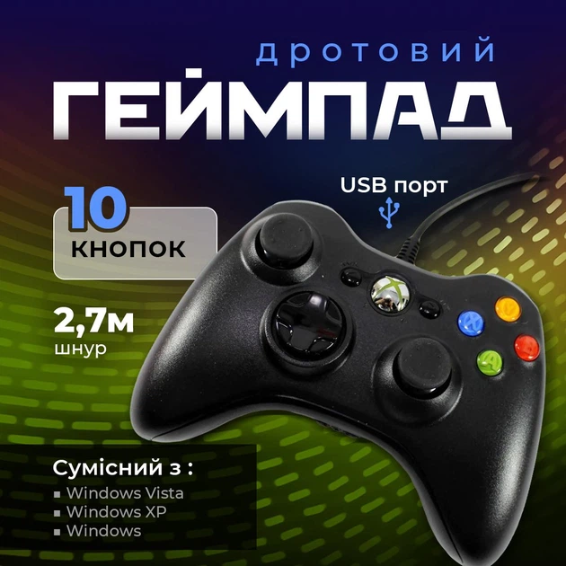 Джойстик дротовий для Xbox 360 та ПК провідний маніпулятор USB геймпад для хбокс 360 Чорний