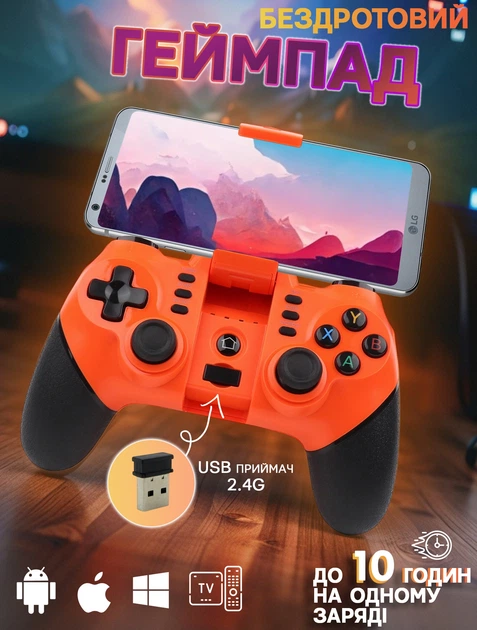 Універсальний бездротовий геймпад GamePro X6(ZM) Bluetooth акумуляторний джойстик Чорний з помаранчевим