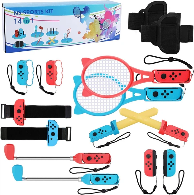 Набір 14 в 1 спортивних аксесуарів для Nintendo Switch (ракетки для тенісу та бадмінтону, ремінці на ноги, ремінець на зап'я