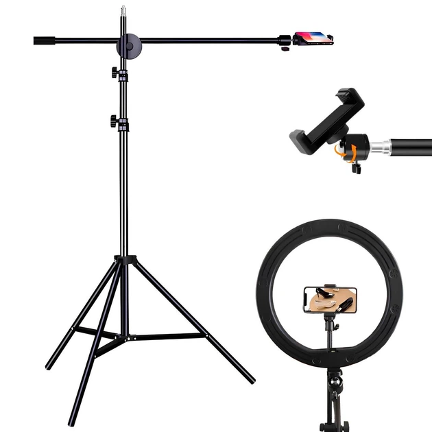 Підлоговий штатив з кріпленням під лампу та телефон 55-170 см, H13 / Студійний штатив-тренога / Складаний штатив
