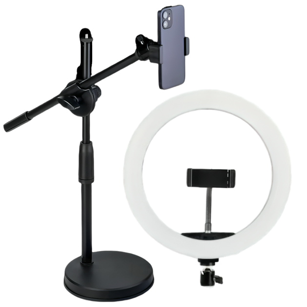 Набір штатив журавель тримач настільний з регулюванням висоти для лампи телефону 35-60 см з кільцевою лампою (482213-Prob)