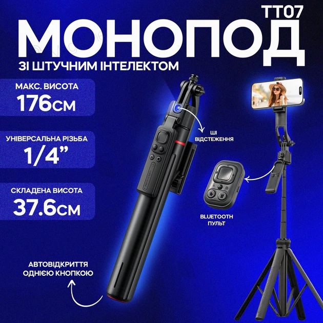 Штатив для телефону з датчиком руху TT07 176 см з кнопкою авторозкриття ніжок (3528)