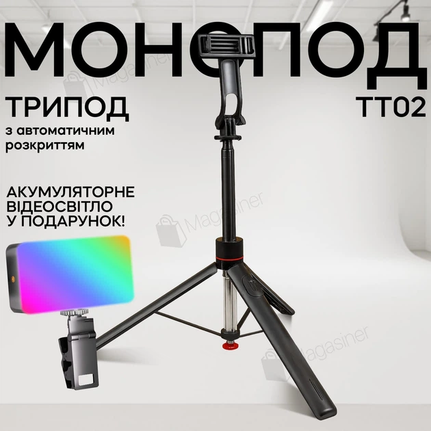 Набір блогера штатив для телефону 175 см з авторозкриттям ніжок і відеосвітлом RGB (3484-1)