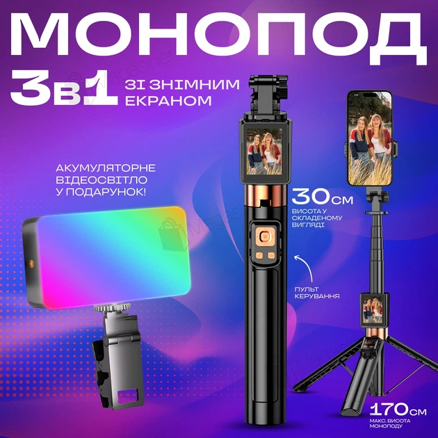 Набір блогера штатив для телефону 170 см зі знімним екраном і відеосвітлом RGB (3363-1)