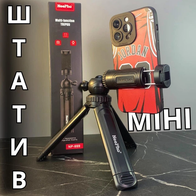 Трипод міні штатив для телефона і фотоапарата настільний тринога висотою від 17 до 32 см з додатковим кріпленням холодний ба