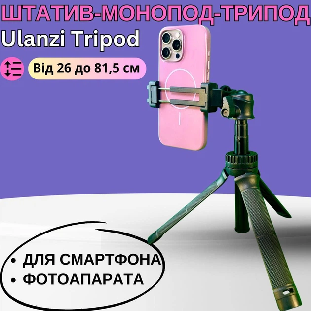 Штатив міні тринога для телефону і фотоапарата трипод монопод для камери телескопічний регульований від 26 до 81,5 см Ulanzi