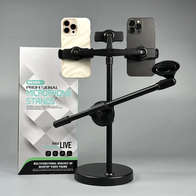 Мікрофонна стійка журавель 42 см з тримачами для двох телефонів Profesional Stands Metal Чорний 57389