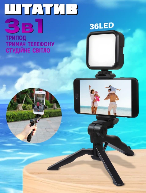 Штатив для фото та відео зйомки з лампою та тримачем телефону 3в1 Tripod HA87