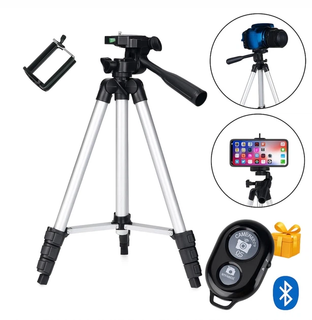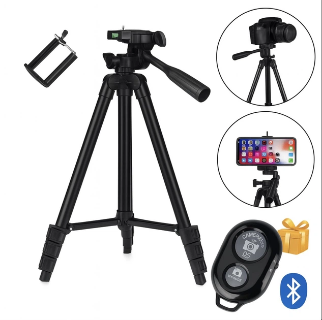 Штатив для телефону та камери 3110 з тримачем, чохлом, рівнем + Bluetooth-пульт у подарунок