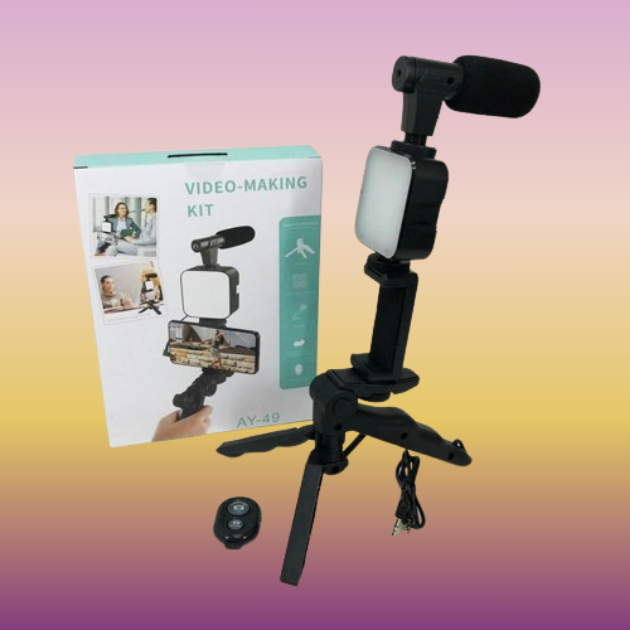 Набір блогера 4в1 AY-49 для смартфона штатив мікрофон LED світло Чорний