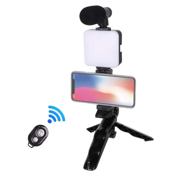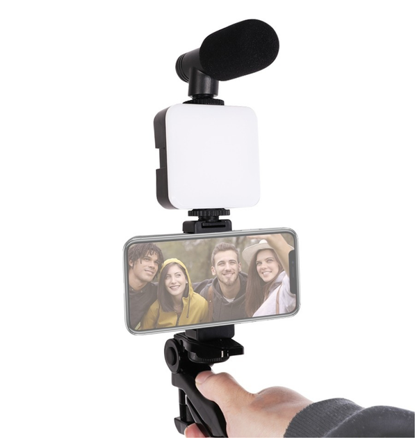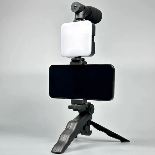 Набір блогера 4в1 AY-49 мікрофон, тримач, трипод, освітлення, кнопка затвору Чорний 57388