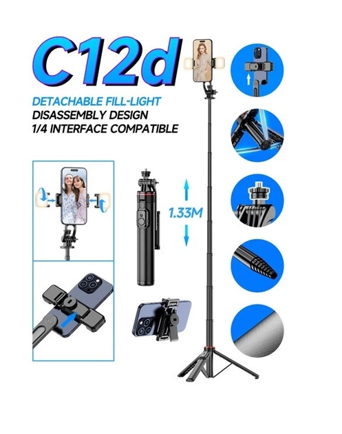 Монопод трипод зручний компактний з мікрофоном для телефону з bluetooth led lamp & flash AY 49Z Black