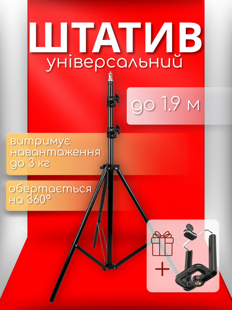 Штатив тренога розсувний тріпод алюмінієвий підлогова стійка підставка 190 см для телефона фотоапарата кільцевої лампи фотоз