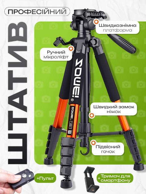 Штатив для телефона і камери ZOMEI Q111 універсальний високий тринога до 150 см трипод із тримачем і пультом для стабільної