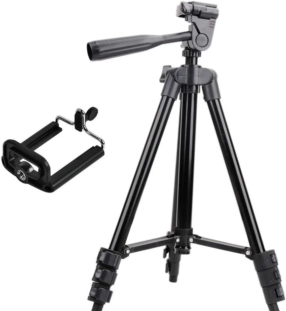 Портативний алюмінієвий штатив 1,4 м для телефону, фото-, відео-, екшн камер, кільцевих ламп та ін., Camera tripod stand 1.4