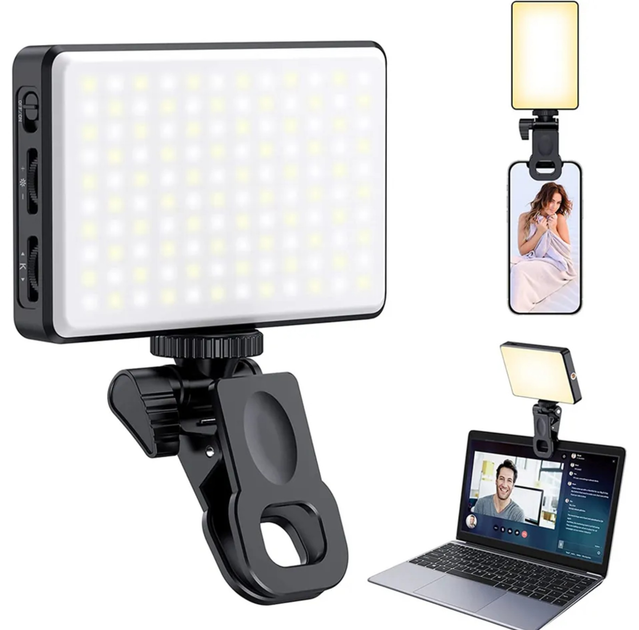 120 LED Постійне накамерне світло, підсвітка для фото і відео з акумулятором 3000мач з затискачем для фіксації на телефонах,