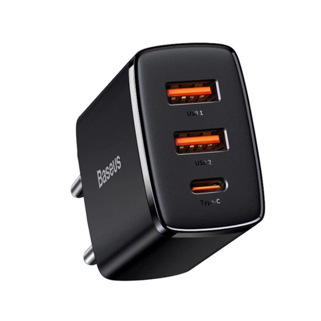 МЗП Baseus Compact Quick Charger 30W (Type-C + 2USB) black