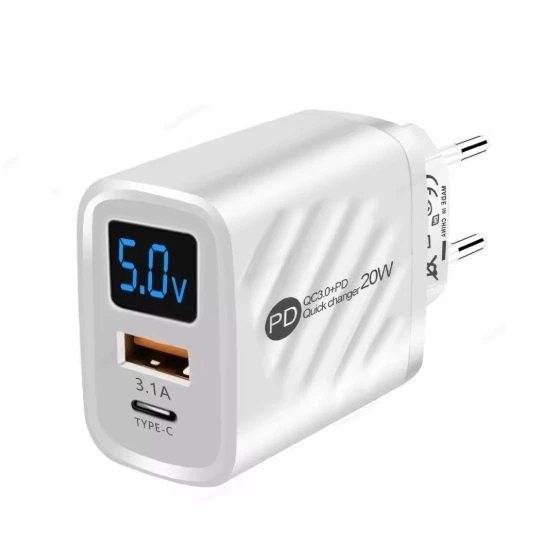 Зарядний пристрій Toocki 20W на 2 порти 1-USB 1-PD з екраном White (SH0000314)