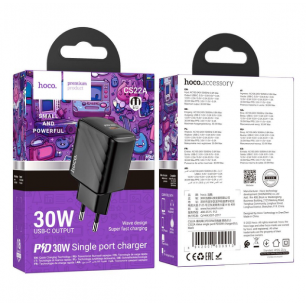 Зарядний пристрій HOCO CS22A Value з одним портом Type-C PD30W