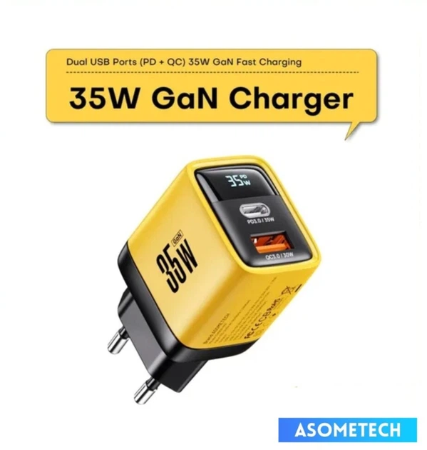 Зарядний пристрій ASOMETECH 35W GaN TypeC USB LED-дисплей PD3.0+QC3.0 Швидка зарядка для Apple iPhone, iPad, MacBook, Samsun