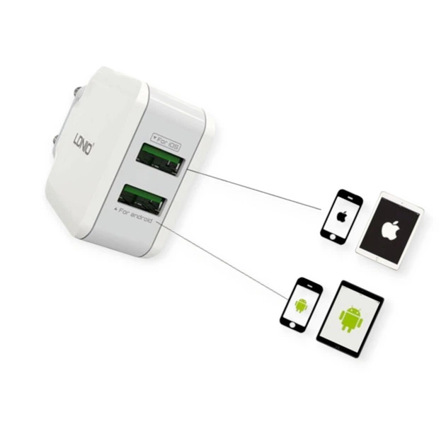 Зарядний пристрій від мережі 220В на 2USB 2.4A білий Ldnio