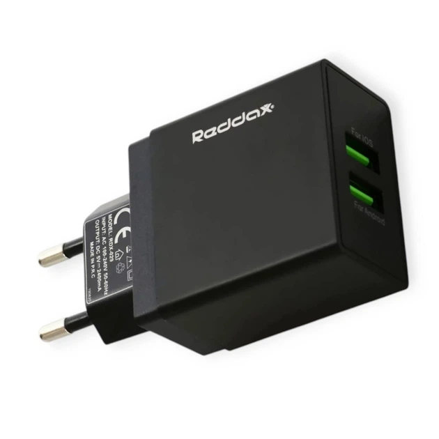 Зарядний пристрій від мережі 220В на 2USB 2.4A чорний Reddax