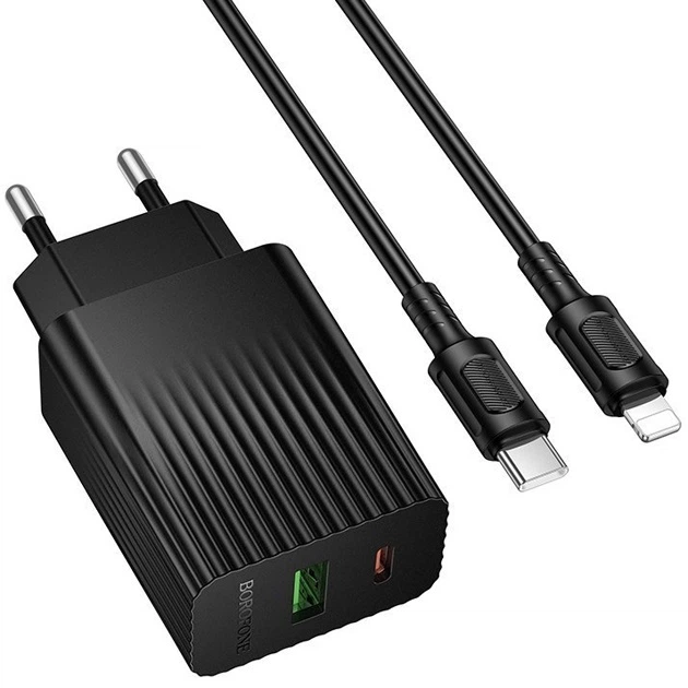 Зарядне мережеве BOROFONE BAS74A (USB/Type-C PD20W + QC3.0) швидка зарядка для Android/Samsung/Apple iPhone + кабель Lightni