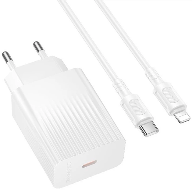 Зарядне мережеве BOROFONE BAS73A (Type-C PD20W) швидке заряджання для заряджання мобільних пристроїв + кабель Lightning Біли
