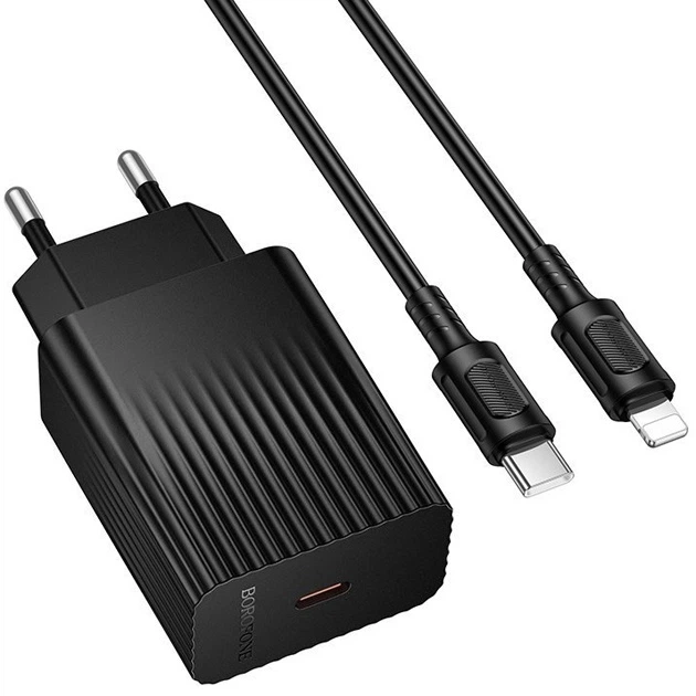 Зарядне мережеве BOROFONE BAS73A (Type-C PD20W) швидка зарядка для заряджання мобільних пристроїв + кабель Lightning Чорний