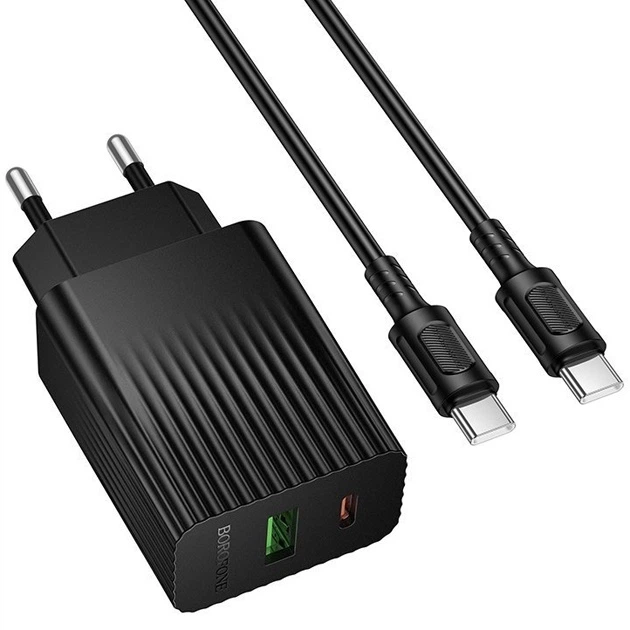 Зарядне мережеве BOROFONE BAS74A (USB/Type-C PD20W + QC3.0) швидка зарядка для Android/Samsung/Apple iPhone + кабель Type-C