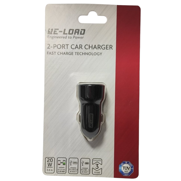 Автомобільний зарядний пристрій Re-load 2-port із двома USB-портами чорний